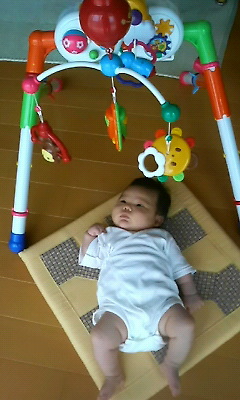 まずは上半身の運動で、腕の付け根を加圧し、説明書のプログラムの通りに運動してみた。すると、予想以上にかなりきつかった。たった10分間のエクササイズで、いつもかいたことのない汗が、にじみ出してきたのである。 引き続き下半身プログラムに移行し、脚の付け根を加圧して20分間の運動をしてみた。上半身ほどきつくなかったものの、10分経過したぐらいから次第に体がだるくなってきた。全てのプログラムが終了した時は、「ハア、ハア」と息を切らすぐらいの状態であった。たった30分間の運動でここまでの効果があるとは・・・正直驚いている。 これから体を徐々に慣らしていき、体脂肪の付きにくい体にし、健康を維持していきたいと思います。そして加圧トレーニングの効果のほどは、また報告していきたいと思います。 てるひこ PR 2009年1月5日からスタートしたダイエット健康プログラムも、もう終盤に差し掛かってきた。ダイエット日記4(2009年5月22日のブログ参照)からだと、本日で52日間経ち、体重が1kg減の73kgという結果である。目標体重の72kgまで、あと1kgというところまでやってきた。スタートした頃からだと、実に17kgの減量に成功しているのである。これからも目標体重の達成まで気を抜くことなく、頑張っていきたいと思う。 伸び悩むダイエット健康プログラムに喝を入れるべく、昨日、スポーツ店で加圧トレーニングセットを購入した。 加圧トレーニングとは、「適切に血流を制限して行うトレーニング方法」のことで、高い負荷の代わりに血流の制限を行うことで、高い負荷によってしか得られなかったトレーニング効果を、より短時間、短期間、さらに極めて軽い負荷の運動で、より安全に効率よく得られるというトレーニング方法である。 加圧トレーニングの効果は、体脂肪の燃焼と、筋肉の形成には、重要な役割を果たしている。成長ホルモンは全身に作用するので、血流を制限した腕や脚だけでなく、全身の脂肪を分解し、筋力を向上させる。 前々から非常に興味のあった加圧トレーニングであったので、今後、私のダイエットライフに大きな力となるのは間違いなしだと思う。早速、今日からトレーニングに励みたいと思います。また効果のほど報告します。目標体重まであと1kg!!! てるひこ 最近、奏来の健康診査で、妻が松山市保健所赤ちゃん相談に連れて行った。そこで保健士さんに、「首を鍛える為に、30秒間うつ伏せをさせてあげて下さい」と言われたそうだ。早速家に帰り、うつ伏せに挑戦させて見た。すると、泣くと予想していたのに反し、案外楽しそうにうつ伏せをしていたのである。目を丸々とさせ、私たちの方をじーっと見ていた。奏来も初めてのうつ伏せに、感動しているのだろうか・・・。 これからも徐々にうつ伏せをさせてあげ、首が一刻も早く座るようにしてあげたいと思う。頑張れよ!奏来!!! 1ヵ月前の体重=3774g、身長=50.5cm→現在の体重=5508g、身長=55.5cm てるひこ 奏来が泣きだすと、先日おばあちゃんに購入してもらったメリーが威力を発揮します。奏来は上でクルクル回るメリーをじっーと眺めています。これで70%の確率で泣き止んでくれます。しかし、機嫌が悪い時はまったく効果がありません。 本日、愛媛新聞に掲載された記事を見ていただきたい。松山市制120周年記念事業として、(社)松山青年会議所主催による、世界記録挑戦イベントを、9月20日(日)堀之内公園(旧市民球場跡地)で実施する。イベント内容は、みんなの夢(松山市民一人一人から魂を込めて書いていただく絵)をつなぎ、松山城下にミカンの巨大モザイク画を出現させるのである。達成すれば、絵の使用枚数世界最多1万枚のモザイク画として、ギネスブックに申請する。 先月に開催された、松山青年会議所6月例会行事(2009年6月17日のブログ参照)では、堀之内再生検討委員会が推進する、「堀之内から始まるローカルコミュニティーの復活」~まず私たちから一つになろう~というテーマが、松山青年会議所メンバーたちに伝えられた。この時私は、堀之内再生検討委員会の熱い想いに心を打たれた。まつやま市民みんなが盛り上がり、活気のあった堀之内地区を、今こそみんなの力で再生させようではありませんか。そして、松山全体が一丸となる為にも・・・。 松山青年会議所、堀之内再生プロジェクトは、まつやま市民みんなの夢の実現達成の為に、毎晩遅くまで打ち合わせ・段取りをしております。9月20日(日)は、まつやま市民みんなが一丸となり、みんなの夢を松山から日本、そして世界に発信していきましょう。ご支援・ご協力のほど、よろしくお願いいたします。 世界記録挑戦イベント概要はこちらhttp://sekaikirok.exblog.jp/ てるひこ 7月8日(水)、7月度の門屋組店社安全パトロールを実施した。本日のパトロール員は、私と中田部長、山口さん、佐伯さん、重見さんの5名であった。本日は雨の中での安全パトロールということで、晴れた作業環境の良い現場とは違い、大変滑りや