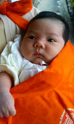 平成21年丑の年、私はある決意をした。「絶対にやせてみせる」と心に誓った。 なんでこんな思いになったかというと、健康診断の結果がきっかけである。送られてきた健診成績表に書かれた真っ赤な数値に愕然としてしまった。尿酸値11.6mg/dl。これが高い数値なのか低い数値なのか判らないが、明らかに上限数値7.0mg/dlを超えている。この数値が高くなると痛風を発症する恐れがあるらしい。まさか自分が・・・。 6月3日(水)、奏来が誕生して生後1ヵ月をお祝するお宮参りを、氏神様である伊佐爾神社で執り行った。正式には男の子は生後31日目、女の子は生後32日目であるが、天候や休日等の都合に合わせれば良いとされている。 この日は生憎の雨が降っており、天候には恵まれなかったものの、ちょうどお参りする頃には雨が一瞬あがって、滞りなく神事を執り行うことができたのであった。おかげでいい写真を撮ることもできました。感謝しております。ありがとうございました。 次回の奏来イベントは、生後100日を祝うお食い初め(お箸ぞめ)である。これは一生食べるものに困らないようにと祈る行事である。この時にはもう首は据わっているかな~。これから待ち受ける奏来イベントを、今日も首を長くして待っている夫婦なのであった~。←めざましテレビ、今日のわんこ調(笑) てるひこ 神事の最中本当にいい子にしていた奏来。太鼓が「ドンドン」と叩かれた時は、目が丸々として驚いていましたけど・・・。 いい写真が撮れました。大きくなってこれを見た時、どんなに感じるかな~。楽しみです。 お宮参りの仕方とマナー