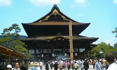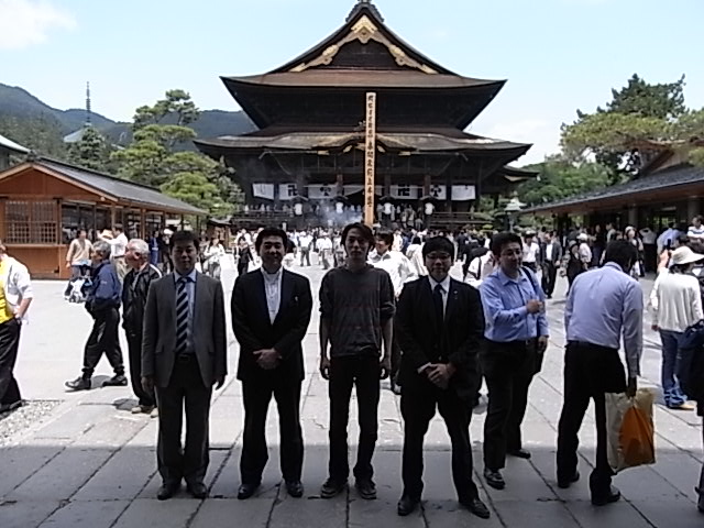 × [PR]上記の広告は3ヶ月以上新規記事投稿のないブログに表示されています。新しい記事を書く事で広告が消えます。 6月7日(日)、前日開催されたジャパンナイトの興奮がまだ冷めていない松山青年会議所・特攻部隊一行は、午前中空いた時間に信州善光寺を訪れた。 信州善光寺は、一光三尊阿弥陀如来様を御本尊として、創建以来約千四百年の長きに亘り、阿弥陀如来様との結縁の場として、民衆の心の拠り所として深く広い信仰を得ている。 本堂は創建以来十数回もの火災に遭ったそうであるが、そのたびに善光寺を慕う全国の信徒によって復興されてきた。現在の本堂は宝永四年(1707年)の再建で、江戸時代中期を代表する仏教建築として国宝に指定されている。間口約24m、奥行き約54m、高さ約26mという国内有数の木造建築で、T字型の棟の形が鐘を叩く撞木(しゅもく)に似ていることから「撞木造り」と呼ばれている。屋根は総檜皮(ひわだ)葺きである。 善光寺本堂で参拝を行い、境内をぶらぶらと歩いた。途中発見したおみくじを引いたり、善光寺参道に立ち並ぶお土産屋さんを覗いたり、長野名物である「おやき」をいただいたり、非常に充実した午前中を過ごすことができた。 しばらくすると腹時計が鳴り始め、善光寺参道手前にあるそば屋さん、「かどの大丸」に訪れた。ここでは皆、「さらしなそば」を注文した。そしてもうこの珍道中ではお約束、追加の2品目「ざるそば」を注文し、そばをダブルで堪能させてもらった。そばのコシの強さと香りに今日も感動した。 本日は16時より、長野市民会館にてアワードセレモニーが開催された。私は理事長補佐として、日本JC本部団解団式に出席されている小泉理事長を、車で長野市民会館まで送迎した。送迎中、忙しそうにタキシードに着替える理事長を無事送り届け、時間通りにアワードセレモニーに出席することができたのである。 2日間お世話になった長野の地を後にし、特攻部隊4名は愛媛に向けて出発した。長野から愛媛までの距離は約800km。4人で運転を乗り合いながら、無事に愛媛にたどり着くことができたのであった。本当にお疲れ様でした。所要時間、長野19時出発、愛媛3時到着、計8時間。 3日間楽しさ満載の珍道中でしたが、色んな経験や人との縁をいただきました。松山青年会議所の皆さんとの思い出が私の中で一生忘れられないものになりましたこと、感謝申し上げます。これから待ち受ける事業を、皆さんと共に活動できますこと、楽しみにしております。3日間本当にありがとうございました。 追伸:家に到着して恐る恐る体重計に載ると、なんと1.5kg増加しておりました。またダイエット頑張ります。 てるひこ たくさんの人たちで賑わっていました。陽気な空の下、のんびりした時間を過ごすことができました。 100円入れて、おみくじを引いた。結果は↓ ↓ ↓。 結果は吉でした。平凡に過ごすことこそ難しい。うーん、確かに・・・。 かどの丸太自慢のさらしなそば。大変美味しくいただきました。 お約束おかわりで、ノーマルざるそばもいただきました。本音でいうと、実はこっちの方が美味しかったです。 長野珍道中、大変お疲れ様でした。沢山の思い出が出来ましたね。また一緒に旅が出来ますことを楽しみにしております。ありがとうございました。 (社)松山青年会議所特攻部隊キャスト 左より、総務委員会委員長(帽子 大輔氏)。ふるさと文化発信委員会委員長(山本 修平氏)。総務委員会副委員長(佐藤 泰規氏)。総務委員会理事長補佐グループ長(門屋 光彦)。 THE END PR 6月6日(土)、名古屋に一泊した松山青年会議所、特攻部隊4名は、ASPAC長野大会に向けて名古屋を出発した。車で走っている途中に姿を現した名古屋城を横目に、更に東へと車を走らせたのであった。 名古屋を出発して約3時間ほどで長野に到着した。長野に到着して早々に、信州そばを食べるべく、そば屋さんを探索した。探索すること30分、ようやく「蕎麦にしざわ」を発見した。そして店に入り、特攻部隊全員同じ「鴨そば」を注文したのであった。私はこれだけでは足らなかったので、「田舎そば」も追加で注文した。信州そばを大変美味しくいただいた一行は、次第に長野に着いたことを実感し、テンションが上がってきた。 本日は明日開催される式典の前夜祭として、ジャパンナイトが長野エムウェーブで開催された。ジャパンナイトでは、152の各地青年会議所がそれぞれブースを開設し、個々の名物・名産を全国のJCメンバーに発信して見聞を深め合うのである。私たち(社)松山青年会議所のブースでは、愛媛ポンジュース、五色そうめん、桜うづまき、伯方の塩を全国のJCメンバーに向けて発信した。 約7千人超の全国の青年会議所メンバーが集約された長野エムウェーブは、最高の盛り上がりを見せ、活気と熱気の渦に包まれた。私たちのブースもテンションが最高潮に達し、全員一致団結の下、全ての商品を完売することに成功したのであった。皆さんお疲れ