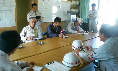 × [PR]上記の広告は3ヶ月以上新規記事投稿のないブログに表示されています。新しい記事を書く事で広告が消えます。 株式会社門屋組創業100周年のお祝いに、たくさんの方々から心のこもった贈り物を賜った。その中でもこの掛け軸は、幼少期より姉たちが大変お世話になった茶道の先生、船引 芳子先生から賜ったものである。 なんでもこの掛け軸は、「一」の字を近代的に表現した書体で、作者は日本書家十傑の一人であった白方 重男様の作品である。船引先生が昔、松山市立道後中学校で先生をしていた頃、白方先生よりこの「一」の掛け軸をいただいたそうだ。そしてその時、白方先生から「何事も一から始まるもので、何より大切であり、めでたいことだよ・・・」と申されたそうである。 このような船引先生の思い出深い「一」の掛け軸を賜り、早速、全社員がいつも目を通す場所に飾らさせていただきました。これから毎朝この掛け軸を見て、いつも初心を忘れることなく、次の200周年に向けて精進していきたいと思います。船引先生、ありがとうございます。門屋組一同、そして門屋家共々、心より感謝申し上げます。 てるひこ 筑前小石原焼、窯元3代目である太田 富隆様より、魂が込められた筑前小石原焼(刷毛目文壷)を賜りました。太田 富隆様は現在、「民陶の小石原焼」のアイデンティティを見失うことなく、「次世代の生活者に重宝される日常使いの器づくり」をテーマに、新しい小石原焼の潮流を生み出すべく、日夜研鑽を重ねている。マルワ窯http://koishiwarayaki.ocnk.net/index.php/product-group/1?page=2 この筑前小石原焼(刷毛目文壷)は、現在、弊社の社長室に飾らさせていただいております。この貰い受けた想いは、次の世代まで伝えていきたいと思います。太田 富隆様、ありがとうございます。門屋組一同、そして門屋家共々、心より感謝申し上げます。 株式会社タステム代表取締役社長、高橋 靖正様より、マル留の社章を巧みな技術により、金属加工して額に入れ、弊社にプレゼントして下さった。誠にありがとうございます。弊社玄関口を入って真正面の壁に、高々と飾らさせていただきました。門屋組のアイデンティティーは確固として揺らぐことなく、次の200周年に向けて社員一丸となって、一歩一歩、歩んでいきます。マル留の名の下に・・・。 高橋 靖正様、ありがとうございます。門屋組一同、心より感謝申し上げます。 PR 本日、10月30日(金)は國田さん、高田さんの誕生日であります。おめでとうございます。企画設計部の動きを常に把握し、皆に明るい笑顔で接してくれる國田さん。いつもその笑顔に門屋組一同、癒されております。いつもありがとうございます。昼休み中のソリティアも大分上達したようで、更にPCに磨きがかかる國田さん。そんな國田さんも本日は誕生日であります。今日一日、ゆっくりとお過ごしください。本日は誠におめでとうございます。 10月28日(水)、10月度マルトメ安全衛生協議会合同パトロールを実施した。本日のパトロール員は、門屋組から私と中田部長、篠浦部長、佐伯さん、濱田くんの5名。マルトメ協力会社から、株式会社伊予ブルドーザー建設(今岡 一誠氏)、大阪装飾株式会社(水田 佳孝氏)、有限会社西原建設(西原 功二氏)、八松硝子建材株式会社(土井 義春氏)の4名。計9名で安全パトロールを実施した。 本日のパトロール現場は、松山東高校クラブハウス新築工事、愛光学園耐震補強改修工事、三浦工業株式会社北条電機・FA事業部新築工事の3現場を回った。 最初にパトロールした松山東高校クラブハウス新築工事の現場では、屋上階で金属工事、内部で内装工事の天井ボード張りが施工されていた。屋根工事に於いて、足場が屋根より高く設置されている為、労働者への安全確保がされていて、安心して働けるようになっていたので良かった。そして、東側出入口は、生徒さんとの接触(第3者災害)が絶対無いように、仮囲いに一工夫、講じるようにして下さい。よろしくお願いします。 次にパトロールした愛光学園耐震補強改修工事の現場では、コンクリート補修工事、型枠解体、足場解体工事が施されていた。作業箇所が複数に分かれているが、生徒さんたちへの立ち入り禁止標示が分かり易く、的確であった。今後も尚一層、第3者災害防止に努めて頂きたい。よろしくお願いします。 最後にパトロールした三浦工業株式会社北条電機・FA事業部新築工事の現場では、金属工事(天井下地組)、外壁工事、防水工事(屋上階シート防水)が施されていた。現場に入ると、元気で明るい挨拶が返ってきて、大変気持ちのいい現場環境が整っていた。現場内部の通路が広く確保されている点は良かったのだが、電気配線などをもう少し整理するようにして下さい。よろしくお願いします。 3現場を回ってパトロール員たちによる、安全ミーティングを行った。 ・社長の基本方針である“あいさつ”の大切さを実感した。自社に帰って社員に徹底し、社員同士コミ
