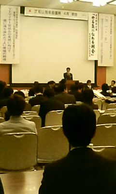 53回忌は、私の父方の曽祖父(門屋組創業者)の門屋留一郎。25回忌は、私の父方の祖母の門屋ミユキ。53回忌と25回忌を一緒に執り行った。 その後、みんなでお墓に向かい、お二人の冥福をお祈りした。曽祖父も祖母もみんなの顔が見れて本当に喜んでいると思う。 皆さんお忙しい中、53回忌、25回忌にご参加していただきまして、誠にありがとうございました。このように家族、親族が集まって親睦を深めている姿は、ご先祖様はさぞ喜んでいることでしょう。曽祖父が築いた門屋組は100年経つ今でも、理念継承され続けています。祖母が愛した俳句や短歌、そしてボランティア精神も後世に伝えられています。今、私たちが生かしていただいていることをご先祖様に感謝し、これからも敬っていきたいと思います。 てるひこ 4月11日(土)、いよてつ髙島屋9階ローズホールにて、チャリティ講演会が開催された。この講演会は、中小企業の経営者、経営幹部、個人事業主、志を持って生きている方に標準した講演会であった。そして、チャリティ講演会ということもあって、収益を全額松山市の児童養護施設に寄付する会でもあった。 第1部講演会が始まった。演題は「~経営成功の99%は経営者次第、このメリットを活かせるのが中小企業の強み~」で、講師に㈱ハイネット・コンサルティング、代表取締役・感動経営コンサルタント、角田識之氏で進められた。 角田先生は、まず「志」のことをみんなに伝えた。「志」とは、ある方向を目指す気持ちや、心に思い決めた目的や目標。そして、相手のためを思う気持ちを示すことである。経営成功をする為には、中小企業のリーダーは、この「志」を持って、リーダーとしての目線を上げることが必要であると仰った。そして最後に、感謝・感動・感涙の3つをなくして、中小企業の強みを出してはいけないと述べられた。 引き続き第2部講演会が始まった。演題は「~人より1.5倍働きお客様の喜ぶことをやれ~」で、講師に㈱日能研関東、代表取締役会長、小嶋勇氏で進められた。 小嶋先生は、「勉強というのは自分に対しての投資で、自分の成長の為にやりなさい」と冒頭で仰った。そして自分が今している仕事をしていく為には、次の3つのことが必要であるといった。「仕事が大好きになる事」「仕事の才能があるのか」「仕事をするにあたって、運が必要である」の3つである。そして小嶋先生は、人の1.5倍働いてお客様の喜ぶことをする為には、「頭の悪い人は体をつかいなさい、体は感動を与える、頭も体もつかえない人は心(ハート)をつかいなさい」と仰った。 最後に小嶋先生は、次の4信条を私たちに伝えてくれた。 一.全ては一から始まっていることを忘れないこと。 二.自分との約束は絶対に守りなさい。 三.非常識だと思うことをやりなさい。 四.お客様は恋人だと思いなさい。 本日は『熱気』のW講演会にご参加させていただきまして、誠にありがとうございました。先生方の熱い思いが、私の心を熱くさせてくれましたこと感謝申し上げます。「今こそ明るくイノベーション!」という思いを胸に、「志」を持って、これからの経営に望んでいきたいと思います。ありがとうございました。 てるひこ 4月10日(金)、53年会が行われた。7年間も続いているというこの53年会に、友人の紹介で本日初めて参加させてもらった。