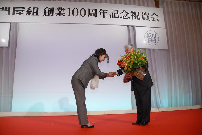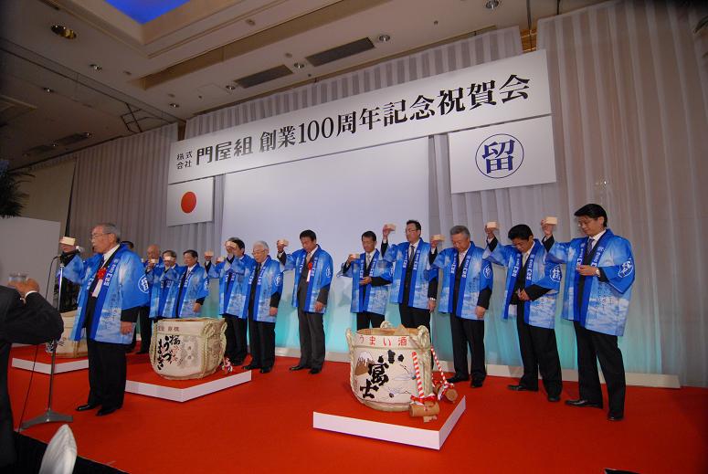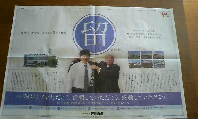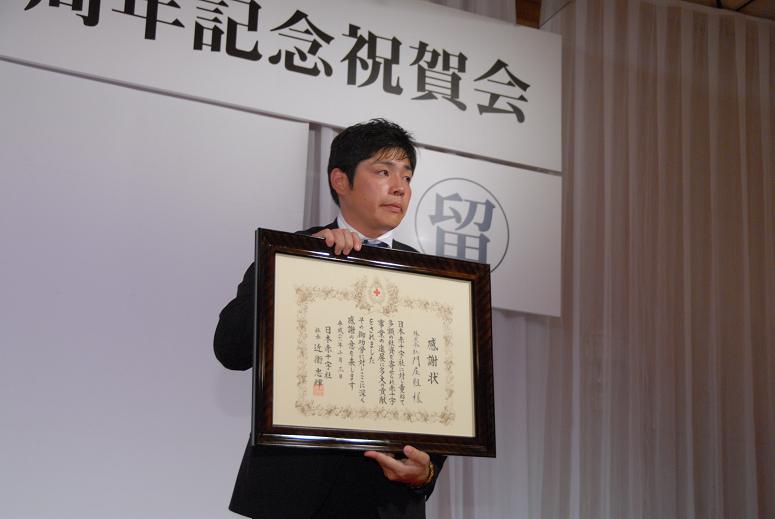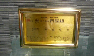 × [PR]上記の広告は3ヶ月以上新規記事投稿のないブログに表示されています。新しい記事を書く事で広告が消えます。 兄弟たちから私へ社長就任祝いとして、金の名刺をいただいた。突然のプレゼントだったのでビックリした。このような物は加工するのに前々から段取りしてないといけない。そのような過程がある中で、兄弟たちが相談し合い、サプライズでこの金の名刺を作ってくれたことに、私は感動を覚えた。ありがとう、感謝します。 兄弟たちからこの素晴らしいプレゼントを貰い受け、今後常に、代表者としての自覚を失うことのないように、いつも眺めて勇気付けたいと思う。粋な計らい、確かに受け取ったぜ!!! てるひこ 裏を見てみると、このようになっていました。これまた素晴らしい!!!私の一生の宝物にしたいと思います。兄弟たち、ホントにありがとう!!! PR 10月24日(土)、エリエールゴルフクラブ松山にて、門屋組広島支店マルトメ協力会親睦ゴルフを行った。前日の23日に開催した、弊社の創業100周年記念祝賀会の余韻がまだ残っている最中での親睦ゴルフとなった。そして本日も、会長と私のゴルフバトルのゴングが鳴り響いたのであった。 秋真っ只中のゴルフ場も、最近少し肌寒くなってきた。ゴルフプレーヤーたちの衣替えの季節である。本日より私は、半袖から長袖に衣替えした。スタートホールを迎え、打ち番を待っている最中、素振りをしながら体をほぐし温めた。そして、迎え打つファーストショットの行方は・・・・・・。スライスしたボールは、何とかフェアウェイをキープしたのであった。本日一緒にラウンドするメンバーたちも、「ナイショット!!」と声を上げてくれた。中々いい滑り出しである・・・。 ドライバーの当たりが良く、会心の一撃が続いていた。しかしそれも束の間、次第にドライバーではチョロ、アイアンではシャンクという悲惨な結果が待っており、スコアは厳しいものになってきた。でも何とか前半戦を、49というスコアでラウンドすることができたのである。一方、会長のスコアは51であった。前半戦、勝利!!! 昼食を食べ、後半戦に突入した。後半戦も気合を入れてゴルフに臨んだ。しかし悲惨な結果はまた続くのであった・・・。苦労するゴルフはまだまだ続く・・・。そして最終ラウンドを迎え、後半戦の結果は53。前後半の合計は102であった。フロントで会長と出くわし、何やらニヤニヤと笑っていた。「どしたん?よかったん?」と私は会長に聞くと、「お~、43よ」と自信満々に言われ、結局、ゴルフバトルの勝者は会長の勝利となった。 門屋組広島支店マルトメ協力会の皆様、二日間、本当にお世話になりました。楽しいゴルフが展開出来まして、大変嬉しく思っております。また今度は、広島で皆様とゴルフをプレー出来ますことを、楽しみにしております。ありがとうございました。 てるひこ 笑いあり、笑顔ありの楽しいゴルフをプレーすることが出来ました。皆さん、本当にありがとうございます。門屋組広島支店を、今後ともよろしくお願い致します。 10月23日(金)、松山全日空ホテルにて、株式会社門屋組創業100周年記念祝賀会が開催された。 多くの方々にご来場賜り、18時より祝賀会は始まった。 式次第一、祝賀会開催に先立って、私は主催者挨拶を行った。壇上へ向かう間、次第に緊張していく自分がいる。心臓の鼓動が止まらない。壇上に上がり、ご来場賜った皆様のお顔を拝見した途端、不思議と緊張していた自分はそこに居なくなっていた。それは、いつも私を支えてくれている家族、社員、親族、友人たちが見守っていてくれたから・・・。そして開会の挨拶は始まった・・・。 ご来場賜った皆様への御礼、そして私の心境と4代目代表者としての所信と、100周年後の門屋組の決意。最後に、初代、2代目、3代目に成り代わり、皆様のおかげで100周年を迎えられたことへの感謝を申し上げた。創業者である門屋 留一郎が貫いた、「誠実一途」「顧客本位」の精神が込められた、マル留バトンを受け継いだ者として・・・。 式次第二、心温かな来賓祝辞を、衆議院議員(塩崎 泰久氏)、愛媛県商工会議所連合会会頭(麻生 俊介氏)、株式会社伊予銀行頭取(森田 浩治氏)より賜った。誠にありがとうございました。 式次第三、日本赤十字社様へ弊社から、寄付金の目録贈呈を行った。そして、日本赤十字社愛媛県支部事務局長(河野 恒樹氏)より、感謝状を賜った。日本赤十字社愛媛県支部様は、2009年10月3日に創設120周年を迎えられた。(2009年10月4日のブログ参照) 式次第四、54年間、門屋組3代目として今まで門屋組を支えてきていただいた門屋 齊会長に、門屋組スタッフを代表して重見 圭子さんより花束贈呈が執り行われた。その時私は見た・・・。会長が、感無量と言わんばかりの顔をしていたことを・・・。会長、今まで本当にお疲れ様でした。 式次第五、門屋組創業100周年を祝って、鏡開きを執り行った。ブルーのマル留法被を羽織ってい