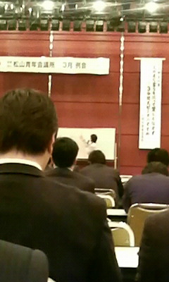 × [PR]上記の広告は3ヶ月以上新規記事投稿のないブログに表示されています。新しい記事を書く事で広告が消えます。 3月17日(火)、南海放送にて、(社)松山青年会議所3月例会が行われた。この日は公式訪問例会ということもあって、愛媛県の各地青年会議所さんが来られていた。 本日の例会行事は、演題を「人のよく言うを以って賢しとなさず~3分間スピーチのすすめ~」、講師にフリーアナウンサーの宇都宮民氏で進められた。 先生はまず、人と話をするにはコミュニケーションが大事であると仰った。人とコミュニケーションをとっていく上で、(声、態度、言葉、表情)がしっかりしていないといけない。人は見た目が9割だから特に注意しておくとが重要である。 聞き手の心をつかむにはどうすればよいか?では、先生は「つかみよし」を考えて下さいと言われた。「つかみよし」とは? つ:つながり か:関心ごとにふれる み:身近な話題 よ:予告して話す し:質問する このことを頭に入れて話をすると、聞き手は話手のことをもっと理解して聞いてくれるということである。 短い時間の中で先生のお話は、我々JCメンバー達によく伝わったと思う。人前で話すことを苦手意識せず、これからもっと勉強し、スマートなスピーチが出来るようにしていきたいと強く感じた。貴重なお話をありがとうございました。 てるひこ PR 昨年から門屋組では『ホウ・レン・ソウ』を強化している。『ホウ・レン・ソウ』とは?報告・連絡・相談の略で、ビジネスマナーの基本中の基本である。 先日、愛媛新聞にミウラチャレンディさんの広告、『ホウレンソウは人間関係の栄養である。』が目に留まった。仕事に関わってない方でも非常に判り易い広告だと私は思った。 人対人で成り立っているこの社会では、コミュニケーションは大事である。そこで今一度『ホウ・レン・ソウ』を考えていただきたい。 ※「報告」は、何のために? 仕事が終わった時に、「終わりました」という報告以外にも、「報告」が必要な時が、他にもある。「あれ、どうなった?」と上司や先輩から聞かれる前に自分から報告するようにしよう。 ※必要な「連絡」を適切に伝える 仕事を進めている最中、「他の部署や取引先から連絡が入った」、「他の部署から急ぎの仕事を今やって欲しいと依頼された」など、報告と重なる部分が、多々あるが、何か状況に変化が起きたら、すぐに連絡を入れるようにしよう。 注意:連絡すべき順番と範囲 情報の重要性・緊急性を的確に判断し、連絡すべき人には、確実に伝わるようにしよう。この時、連絡する順番を間違えないようにすること。一番最初に相談するべき人は、直属の上司が基本である。 ※自己判断で仕事を進めないためにも、大切な「相談」 相談することで自分も相手も、安心できる。 仕事をするうち、わからないこと、疑問に思うことも出てくると思う。そんな時は、先輩や上司、時には同僚にその都度、聞くようにしよう。 指示が理解できない、わからないまま仕事を進めて、求められた仕事ができないのでは、時間と労力が無駄になるし、さらに周囲の人に迷惑をかけることにもなりかねない。指示やアドバイスは、メモするなりして、同じことを何度も聞いたりしないようにしよう。 この『ホウ・レン・ソウ』で私が最も大切にしていってもらいたい「ソウ」の部分の「相談」であるが、相談した人やアドバイスをくれた人には、その後どうなったかの報告とお礼も忘れないように、感謝の心を持って常に接して下さい。 てるひこ 3月15日(日)、フジスポーツクラブフィッタへ行った。雲ひとつない青空の中、気持ちがいいので、自宅(道後)からフィッタ(フジグラン松山)まで走って行った。(途中しんどくて歩いた・・・ )因みに、この写真の下に映った影は、妻の指が入ったミスショットである。行く道中では、様々な景色が私の目に映った。その時、私の頭の中は「あれ、ここ更地になっとる」「この家の外観きれいやな~」「こんなところに緑が・・・」などで一杯だった。久し振りに心にゆとりができた気がした。 到着し、筋力トレーニングを主にやった。脱力感が襲ってくる。この達成感はたまらない。その後のサウナでもいっぱい汗を流した。体重計に乗ってみると、なんと76.5kgになっていた。恐るべしジム効果!!! 今後もトレーニングを行っていこうと思う。健康づくりで自分自身を磨いていきます。(人間、皆、体が資本。) 目標体重72kgまで、あと5kg!!! てるひこ 3月14日(土)、松山大学カルフールホールにて、NPO法人ユニバーサルクリエート主催の講演会が開催された。講師は法政大学大学院政策創造研究科教授の坂本光司氏であった。演題は『日本でいちばん大切にしたい会社』で講演会が始まった。 まず先生は、会社経営とは「5人に対する使命と責任がある」と言った。その5人に対する使命と責任を果たすための行動のことを、本当の「経営」と定義している。5人とは?またその使命・責任とは何
