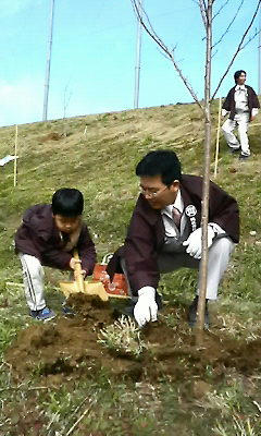 みんなの手で協力し合った植樹は涙ものです。この達成感はいいですよね~。みんな笑顔です。