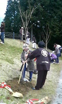 桜(ソメイヨシノ)の苗木が用意されています。約3mくらい。今年の春には花を咲かせてくれます。