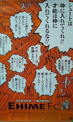 × [PR]上記の広告は3ヶ月以上新規記事投稿のないブログに表示されています。新しい記事を書く事で広告が消えます。 3月より愛媛FCは、2009年度シーズン開幕を行う。第1節は愛媛FC×水戸ホーリーホック戦、3月8日(日)13時30分より、ホームスタジアム(ニンジニアスタジアム)にて、キックオフされる予定である。ニンジニアスタジアムは愛媛総合運動公園内にある。是非、望月一仁監督率いる愛媛戦士達の戦いを、観に行っていただきたいと思う。みんなの手で愛媛を盛り上げ、全国の方に発信しましょう。㈱門屋組は愛媛FCを応援します。愛媛FC頑張れ ![]() てるひこ 愛媛FC2009年度3月のホームゲーム(ニンジニアスタジアム)日程 第1節:3月8日(日)13:30~ VS 水戸ホーリーホック 第3節:3月21日(土)16:00~ VS FC岐阜 第5節:3月29日(日)14:00~ VS セレッソ大阪 PR 2月23日(火)、松山商工会館4階にて、2009年度(社)松山青年会議所第2回総務委員会が行われた。松山青年会議所では、毎月の例会が第3火曜日、委員会が第4火曜日と決まっている。