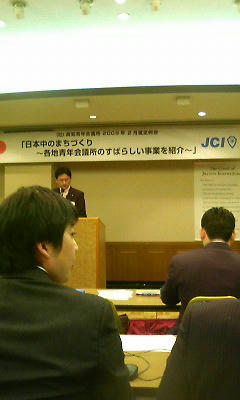 × [PR]上記の広告は3ヶ月以上新規記事投稿のないブログに表示されています。新しい記事を書く事で広告が消えます。 2月20日(金)、サンセットヒルズカントリークラブにて、第3回門屋組親睦ゴルフコンペが開催された。総勢43名の多数の皆様にご参加していただいた。天候の方は曇り、そしてさらに強風がプラスされた状況の中、ゴルフコンペがスタートした。 プレーがスタートしたものの、皆さん強風のアゲンストに苦しんでいた。距離感のつかめないまま、あっと言う間にラウンドが終了した。 私の成績は49、60の109であった。今年に入って110を切ったのは初めてであった。 皆さん大変疲れきった顔の中、ミーティングが始まり、成績発表が行われた。優勝者はなんと我が社の七福神、夷子常務であった。優勝おめでとうございます。私は何の賞にも属さない36位だった。 本日は大変お忙しい中、第3回門屋組親睦ゴルフコンペにご参加していただきまして、誠にありがとうございました。これからも第4回、第5回と長きに渡り存続させていく所存でございます。どうか皆様のお力添えのほどよろしくお願い申し上げます。また楽しいゴルフをやりましょう。 第1回優勝者:株式会社ダイテック(加藤 昭夫氏) 第2回優勝者:大阪装飾株式会社(水田 公明氏) 第3回優勝者:株式会社門屋組(夷子 收氏) てるひこ PR 2月19日(木)、愛媛県赤十字血液センターで、愛媛県建設業協会献血が実施された。毎年恒例の献血運動であるが、今年も門屋組からは多数の方が献血を実施してくれた。皆さん、ご協力ありがとうございます。 私は400mLの献血を実施した。400mLの献血では、18歳~69歳の方が献血することができ、男女共50kg以上ないと献血することができない。そして血液比重が1.053以上、血色素量が12.5g/dL以上ないといけない。年間の献血回数は男性が3回以内、女性が2回以内とされている。 私は今回体重が落ちたせいで、血圧が上が110の下61という理想の数値での献血となった。そのことが私自身、本当に喜んでいる。 愛媛県建設業協会は愛媛県の活性化の為、色んな活動をしています。これからも日々の活動を大切にし、愛媛県を盛り上げ、人の為に活動を実施したいと思います。 てるひこ 2月18日(木)、高知市サンライズホテルにて、(社)高知青年会議所2月例会に理事長補佐グループとして参加させていただいた。松山青年会議所からは8名の方が参加した。 この日は例会行事として、松山青年会議所から講師として招かれていた、木本先輩の講演会が行われたのである。木本先輩は2008年度、文化発信委員会の委員長として活躍された先輩である。 演題は「日本中のまちづくり~各地青年会議所のすばらしい事業を紹介~」で講演会がスタートした。 松山青年会議所文化発信委員会の事業として挙げられるのは、松山俳句甲子園である。この俳句甲子園は高校生がメインの大会で、5人一組の紅白チームに別れて、俳句を読み取る力などで勝敗を決める大会である。 この大会を始めた目的は3つある。 一、俳句文学を盛り上げる。 二、高校生同士の交流を深める。 三、松山の文化を発信する。 この3つの目的の下、松山青年会議所が発信されたものが、長きに渡り一人立ちして、大きな事業となっている。私達も松山の文化をもっと全国の方達に知ってもらい、次世代へと継承させていく義務があるのだと、改めて木本先輩の講演によって再認識させられた。 まだまだ隠された文化はいっぱいある。今後その文化の発信を市民の皆様と共に、各地青年会議所は活動していきますのでご支援、ご協力のほどよろしくお願い申し上げます。 招いていただいた高知青年会議所の皆様、本当にありがとうございました。ますますのご発展を願っております。 てるひこ 2月17日(火)、松山全日空ホテルで(社)松山青年会議所2月例会が行われた。この日の例会行事は、県都LOM理事長シンポジウムということで、四国4県の理事長達がJCへの熱き思いを語りあったのだ。LOMとは(Local Organization Member)の略で、都市ごと、あるいは市部・町村が集まった形で組織され、その組織をLOMという。 パネルディスカッションが始まり、四国4県の理事長が紹介された。高松青年会議所桑嶋理事長、徳島青年会議所庄野顧問、高知青年会議所高野理事長、松山青年会議所小泉理事長。各理事長のJCに入会した頃の時と、現在の心境などが語られた。 入会当時にくらべ、情報を正しく伝達する能力が備わった(松山)。24時間の使い方が上手になった(徳島)。人の立場になって考えれるようになった(高松)。幅広く人を知ることができ、リスクをおって挑戦することがJCでは可能である(高知)。このような各意見が出てきた。 県都LOMシンポジウムを終えて、私は色んなことを考えさせられた。各理事長達は一歩一歩経験を積んで、今その職務をまっとうしている。その学びの精神を忘れずに、コツコツと経験を積んでいきたいと思った。 小泉理事長が唱えるJCi.s.m(JCイズム)がある。 「~踏み出そうこの