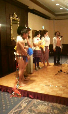 16時から愛媛県建設業協会青年部3支部合同忘年会が始まった。3支部とは?松山支部と伊予支部と上浮穴支部の3支部である。年々青年部の人口が減っているので、今年は3支部合同の忘年会が開かれたのだ。まず懇親会の前にボーリング大会が行われた。皆さん日頃の運動不足のせいで体が硬いようであった。そんな中ボーリング大会が始まった。 足首の骨折が気になっていたのだが、なんとか手投げボーリングで乗りきった。2ゲームを行い、1ゲーム目の私の成績が160ピン、2ゲーム目は165ピンという普段あまり出したことのない好成績で終了した。表彰式には出られなかったのだが、後から聞くと個人3位であったそうだ。ありがとうございました。 18時より平成20年度㈱門屋組忘年会の会場に急ぎ足で足を運んだ。18時には間に合うことができ、社長挨拶より忘年会が開会された。総勢約140名の方がご出席してくださった。門屋組勤務年数40年、30年、20年、10年表彰式が執り行われた。40年表彰、阿部公孝さんと山口隆雄さんの2名。30年表彰は水野耕一さんと尾崎修一さんの2名。20年表彰は谷本吉伯さん1名。10年表彰は松廣卓さんの1名。以上6名の方の表彰式であった。本当におめでとうございます。そして今まで門屋組を支えていただきまして本当にありがとうございました。 マルトメ協力会副会長の濱﨑組代表取締役、濱﨑増司様に乾杯の御発声をしていただき、懇親会が開始された。会場内もいい盛り上がりで、皆さんの顔色も赤色に変わっていい雰囲気になってきた。本当に楽しいお酒を飲み交わせたこと深くお礼を申し上げます。 大変お忙しい中、平成20年度㈱門屋組の忘年会にご出席いただきまして誠にありがとうございました。2009年度も変わらぬご支援とご協力のほどよろしくお願い申し上げます。 てるひこ 12月4日に山の手ホテルにて、松山青年会議所の忘年会が行われた。私にとって初めての青年会議所の忘年会であった。この日の皆さんの顔は本当にいい顔をしていて、辛かった思いを吹き飛ばすかの如く、お酒を飲み交わしていた。 なんといってもこの日のメインは委員会対抗女装大会であった。本格的な女装ということもあって、この日まで皆さんそれぞれ工夫をしてきたそうである。そしてコンパニオンさんの手で完璧なメイクを施すのだ。5委員会から1名ずつ選任されて5名の戦いであった。 大会が始まると大爆笑の渦と大絶賛の渦が入り乱れた。皆さん本気で女になりきっていたのが本当によかった。そして審査が行われた。審査の方法は会場にいる皆さんの拍手の大きさで行った。 優勝者が決まり、委員会同士健闘を称えあっていた。この優勝者は本物の女子高生に見間違うくらいの女装の出来であった。中には惚れて抱擁する方もいた(笑)。本当におめでとうございます。 楽しい夜を過ごさせていただいた、松山青年会議所の皆さん本当にありがとうございました。そしてお疲れ様でした。 てるひこ |
