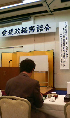 15時ほどで皆さんプレーも終わり、ミーティング室に集まった。表彰式が始まり、優勝者は大阪装飾㈱、水田社長の優勝であった。本当におめでとうございます。優勝の弁では、朝のパッティング練習の時、「今日はグリーンを大分刈ってるよ」という情報が聞けたことと、思った以上にパッティングが入ったこと、そして何よりもメンバーに恵まれたと仰った。こうして表彰式をしている時の皆さんのお顔を拝見すると、生き生きとした表情を見ることが出来、今日プレーをしていなかった私も楽しい思いにして頂いた。本当にありがとうございました。 12月という大変お忙しい中、第2回門屋組親睦ゴルフコンペにご参加していただきまして誠にありがとうございました。また来年の第3回の時には宜しくお願い致します。そして世話をしてくれた松廣部長、本当にお疲れ様でした。 てるひこ 11月28日は8のつく日でマルトメ安全パトロールの日である。本日は協力業者3名の方に同行していただいた。松岡工務店の松岡さん、末光ガラスの友近さん、田中建設の岡本さんの3名で、門屋組からは私と井上課長と佐伯さんの3名合計6名でのパトロールを行った。 最初の現場は済美平成校第二別館、そして河合邸、最後に三浦工業物流センターの3現場を見させてもらった。どの現場も整理整頓状況がよかった。乾燥した日が続くので必ず消火器の配置には気を使う事。本日は大変風が強いので、足場上にある飛ばされやすい物はまとめて番線で結束して下さい。寒い季節になってきたので十分に体をほぐしてから現場の施工にあたって下さい。 本日のマルトメ安全パトロールお忙しい所お集まりいただき誠にありがとうございました。本日もご安全に!! 12時より愛媛政経懇話会11月例会が東京第一ホテルにて行われた。本日の演題は「変革期をどう乗り越えるか中小企業経営者の生き残り戦略」で講師に神戸国際大学経済学部・教授、中村智彦氏で講演が進められた。 2008年は歴史に残る一年になるということで、廃業3割・倒産3割・勝ち残り3割という割合で示されるであろうと中村先生は仰った。 ・淘汰はより一層進む ・事業継承の時期が、危険な時期 ・経営者が経営者とならねばならない時代 これからの時代は父たちの世代の成功体験は通用しないという。 偽装事件を引き起こした企業の共通点はなにか? ・事業がきちんと継承されていない→名ばかり後継者・名ばかり社長 ⇒あなたは「経営者」になっていますか? ・金勘定の重要性 ・世代交代に備える ・新規従業員確保のためにも 私が今日講演を聴いた中で特に印象に残ったのが↑であった。これからもっと経営の勉強をし、生き残って行く為にさらによい職場環境づくりを徹底していきたいと思った。これからも頑張ります ![]() てるひこ 本日11月28日は米本さんの誕生日です。集中力のある米本さんですから、仕事疲れも出てきていると思います。今日ぐらいはゆっくりして家族との団らんを楽しんでください。本当におめでとうございます。